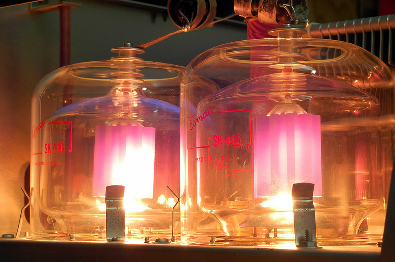 Diese Radios funktionieren mit Röhren. Alle heutigen Radios sind mit dem Nachfolger von Röhren aufgebaut, dem Transistor.