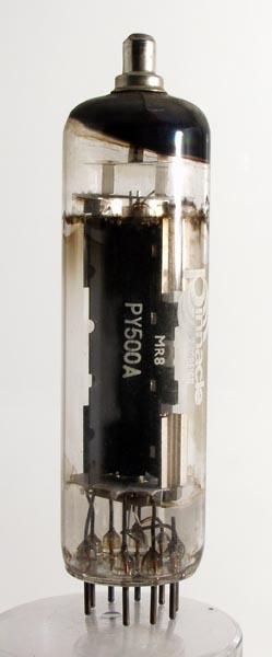 Hier ist eine etwas größere Röhre. Höhe ca. 12cm. Sie hat, wie ich oben schon einmal beschrieben habe, einen Kontakt an ihrer Spitze.