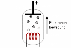 Diode: Oben die Anode, unten der Heizfaden. Die Kathode ist leider nicht eingezeichnet.