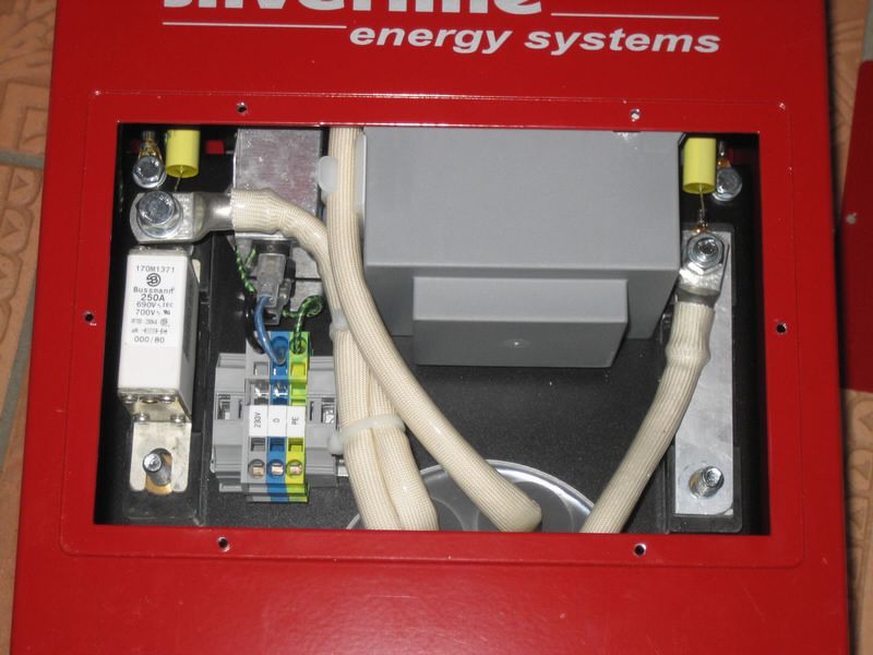 Der Wechselrichter wird mit 50mm² Kabel an die Batteriebank angeschlossen.