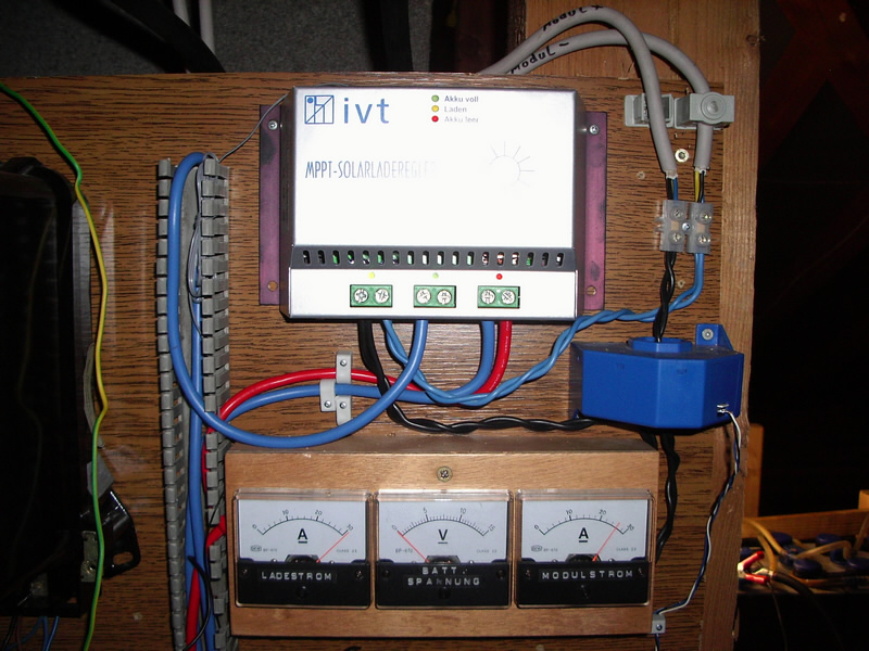 Laderegler sowie Amperemeter: