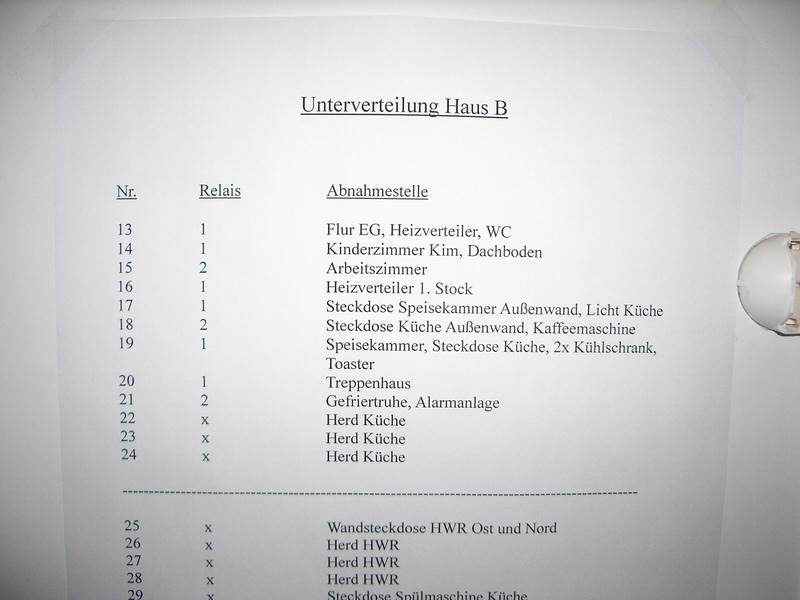 damit ist unsere kleine Rundreise auf dem Dachboden vorerst beendet. Wie schon gesagt wenden wir uns nun der automatischen Netz/Solarumschaltung in der Unterverteilung zu. Ich habe die Sicherungen welche umschaltbar sein sollen auf zwei Umschaltkreise aufgeteilt. Auf gleichmäßige Belastung achten! Angeschlossen wurden Verbraucher, welche oft und kontinuierlich laufen. Z.b. Kühlschränke, Gefriertruhe, Lichter, Heizverteiler (Fußbodenheizung), usw. Darauf achten, dass gerade bei Induktiven Lasten wie Kühlschränken, der Wechselrichter einen hohen Einschaltstrom liefern kann. In der Unterverteilung kommt direkt das Kabel vom 3KW Wechselrichter an. Der kleine Wechselrichter ist hier nicht mit eingebunden. Die Verbraucher habe ich alle an die Sicherungen nebeneinander geschaltet. So verwende ich einfach die üblichen Sammelschienen VOR den Sicherungen und muss keine Brücken legen.